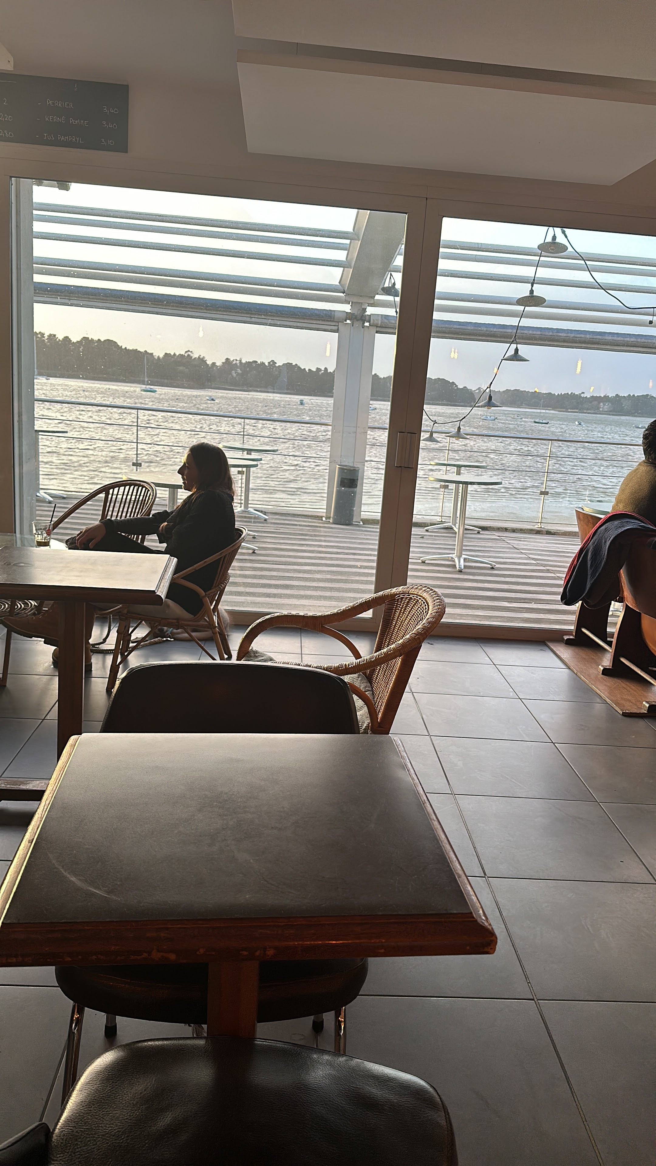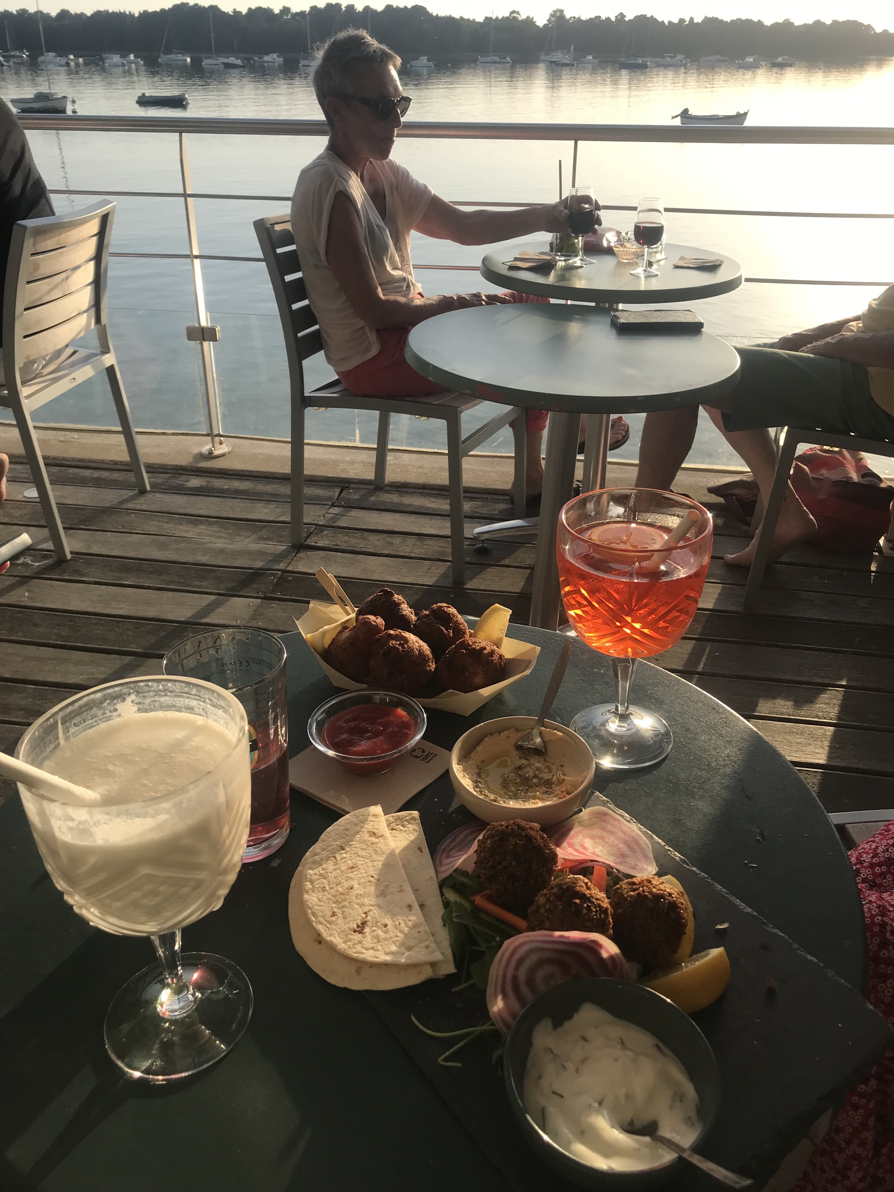 Café sympa au bord de l'eau, apéro-grignotte au soleil couchant...