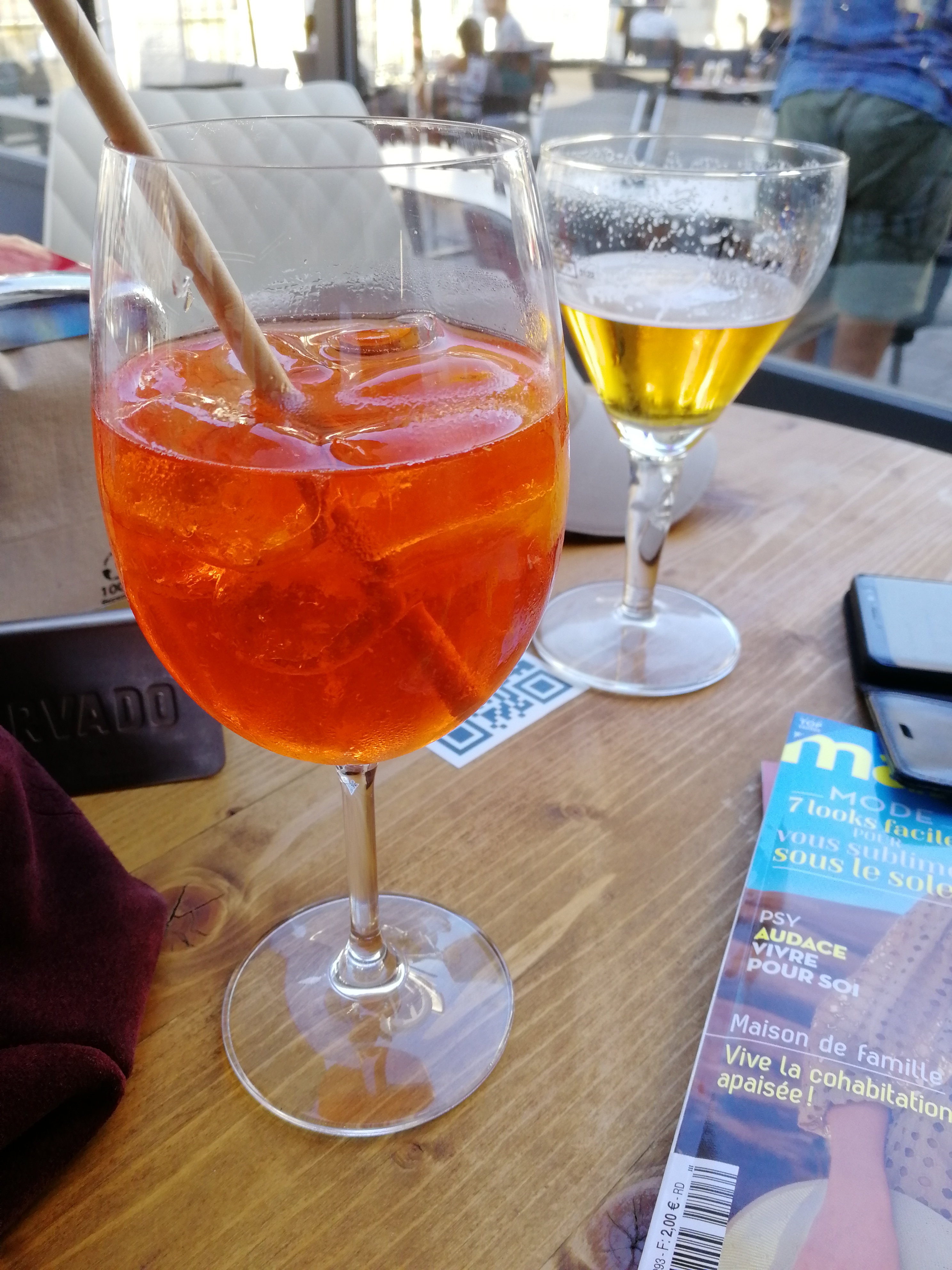 Belle terrasse ombragée à partir de 17h, serveur sympa et avec de l'humour mais chaises ''bruyantes'' quand on les déplacent Au fait ... les verres sont beaux.
