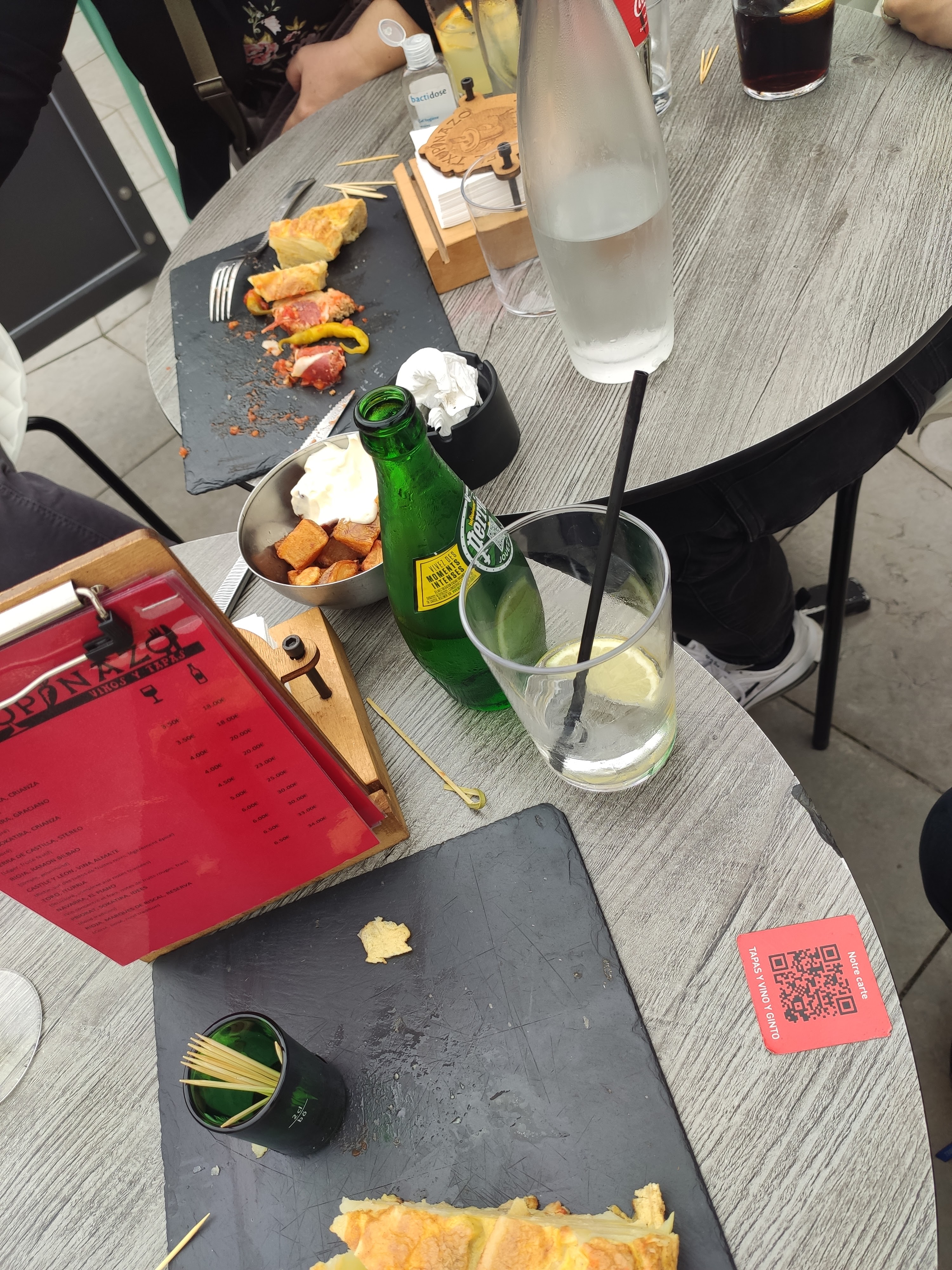 Très sympa pour boire un verre et/ou grignoter en terrasse. Les tapas et autres pinchos sont pas mal du tout. Il y a également du choix dans les vins et cocktails. Le service est très bien.