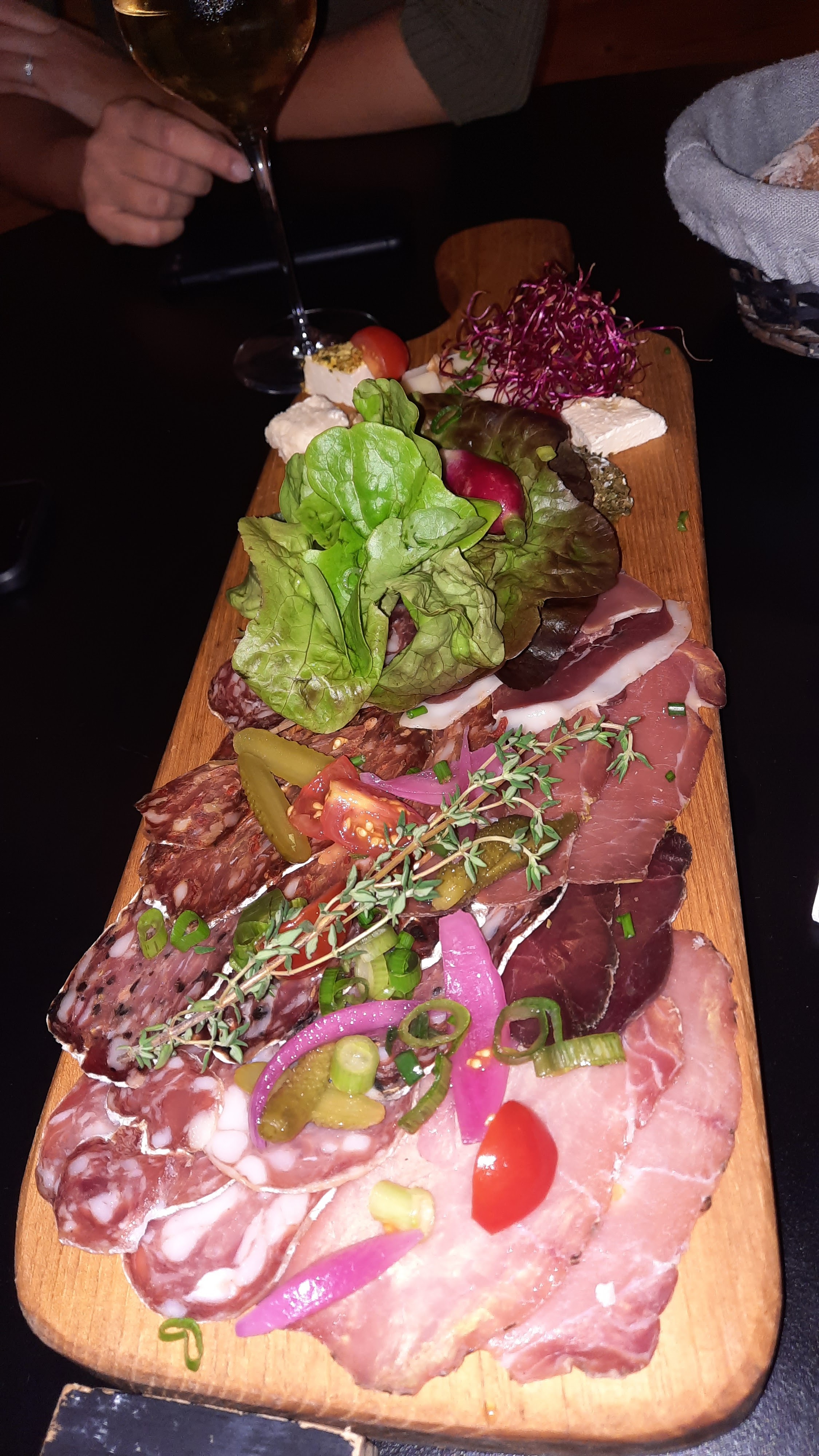 Bonne ambiance avec un beau décors. Planche à partager bien garnie avec de très bon produits. Et personnel très accueillant !!