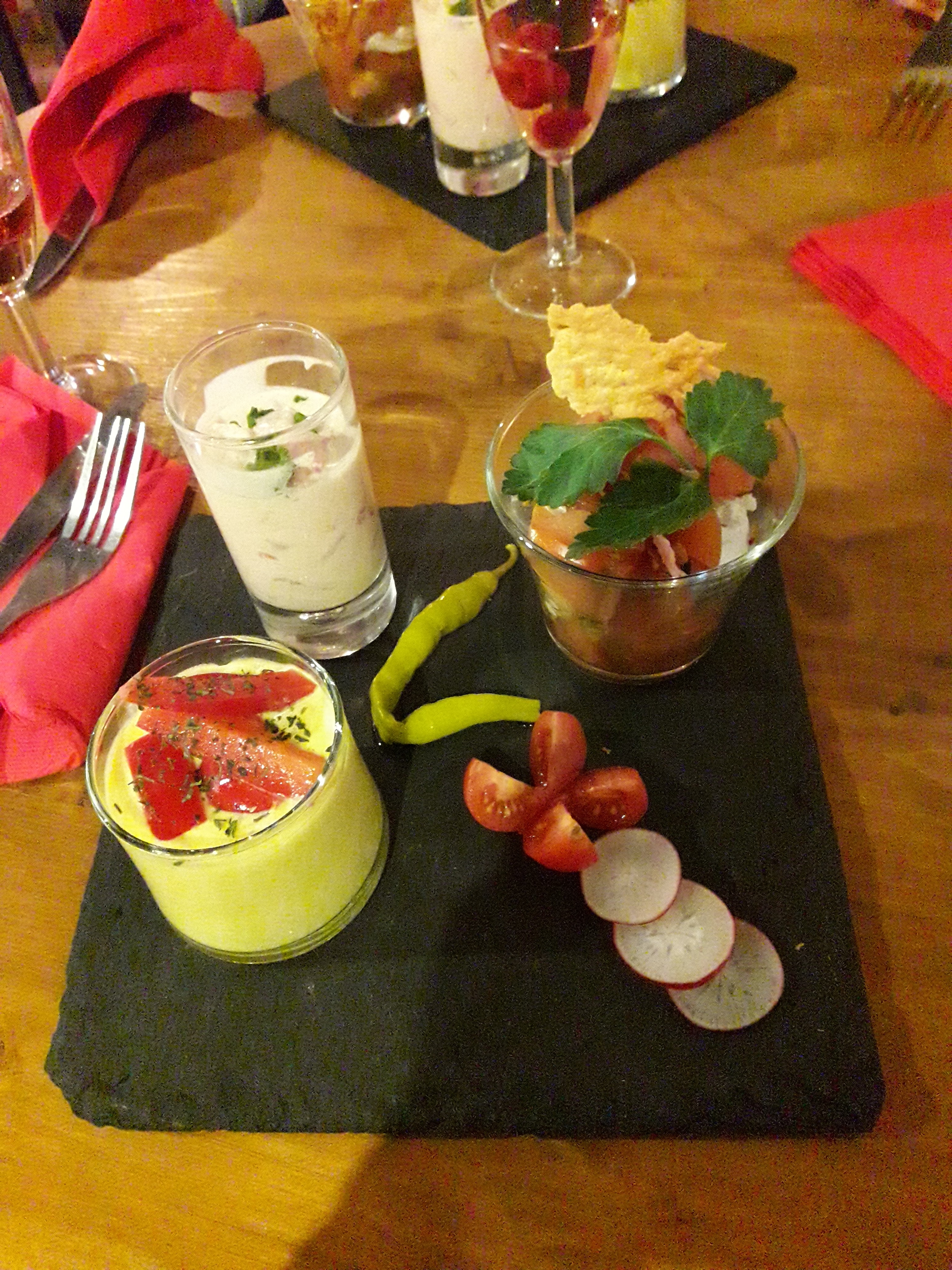 Accueil excellent ! Service parfait. Nous avons goûté des tapas différents, tous très bons et bu 1 apéritif extraordinaire (Chambord piscine). Le patron nous a conseillé pour le dessert (nougats) et c'était waouw !