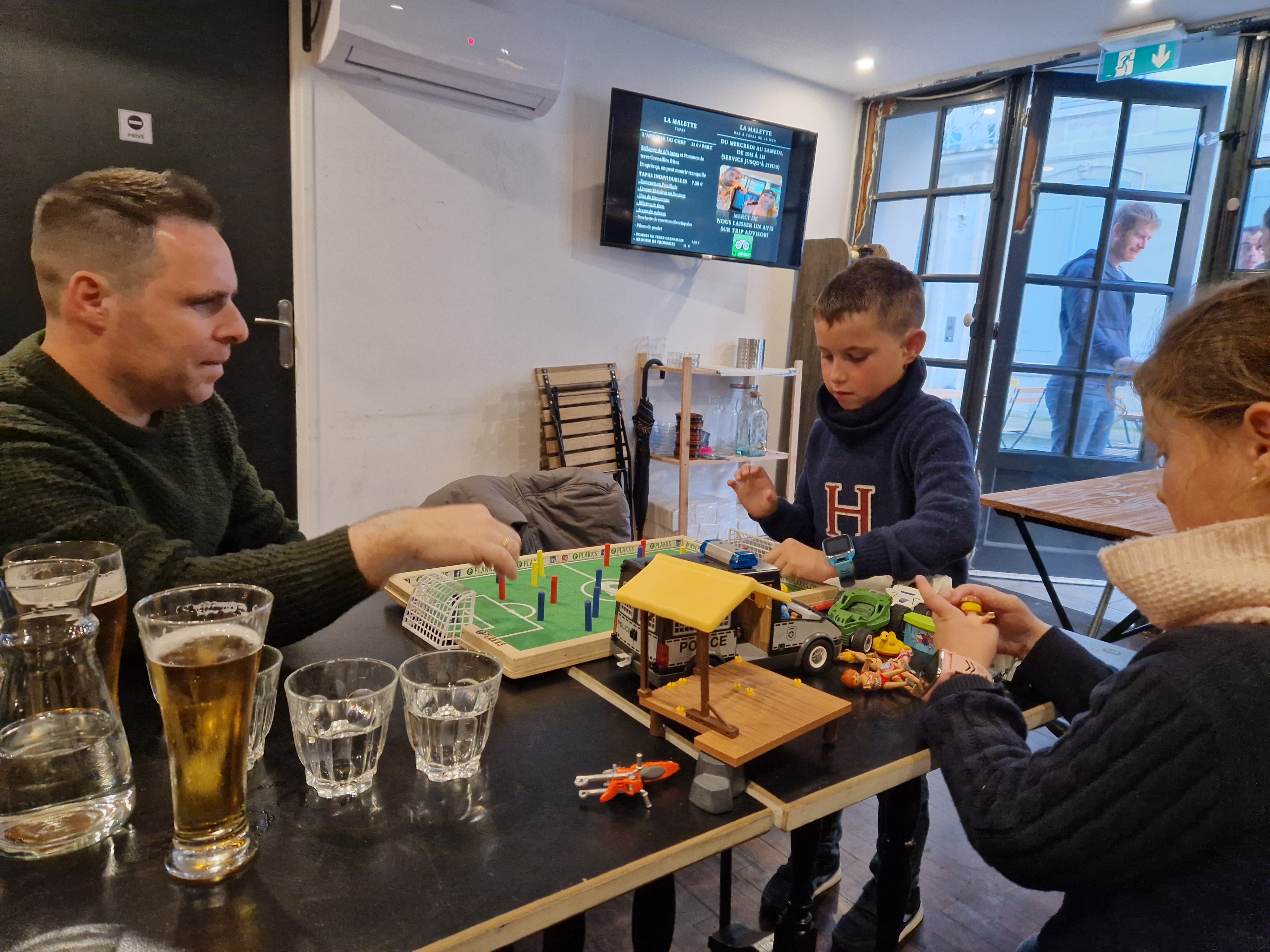 Lieu hyper convivial que cela soit pour les adultes ou les kids. Grignoter ou boire un verre en jouant à un des nombreux jeux de société mis à dispo ? Pas de soucis ! Et a des tarifs franchement doux!Une des superbes adresses de la Rochelle! Alex et son équipe vous accueilleront comme des boss!! Bien évidemment je recommande ++