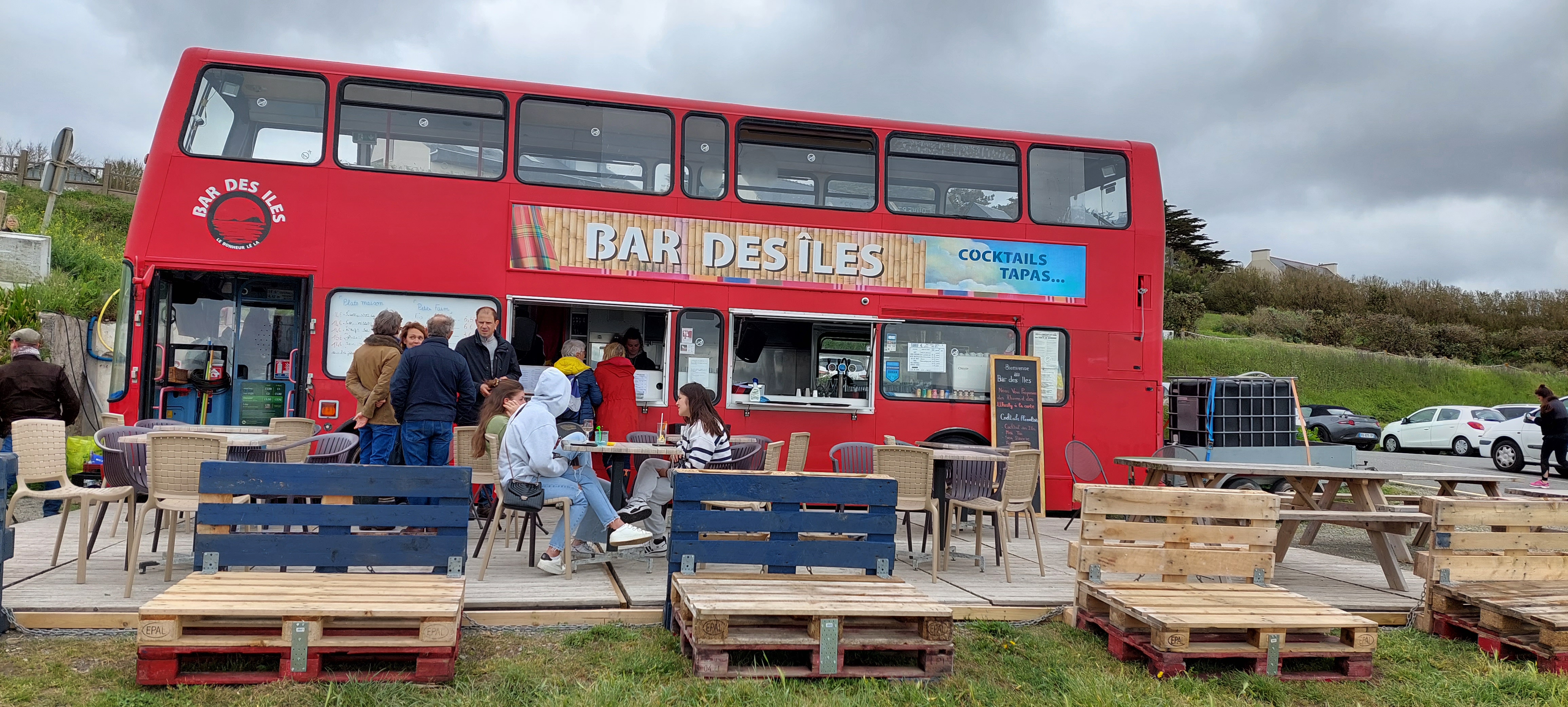 Posté le 19/08/2022 à 07:38"Arrives là par hasard, nous avons été sous le charme de cet endroit insolite. Un bus anglais posé face à l'océan, qui propose de bons cocktails et cerise sur le gâteau, des plats réunionnais maison! Excellents rougail saucisse et curry vert. Quand la Réunion rencontre la Bretagne, ça donne un rougail en ciré sous le crachin, absolument génial! Merci de cette découverte!"
