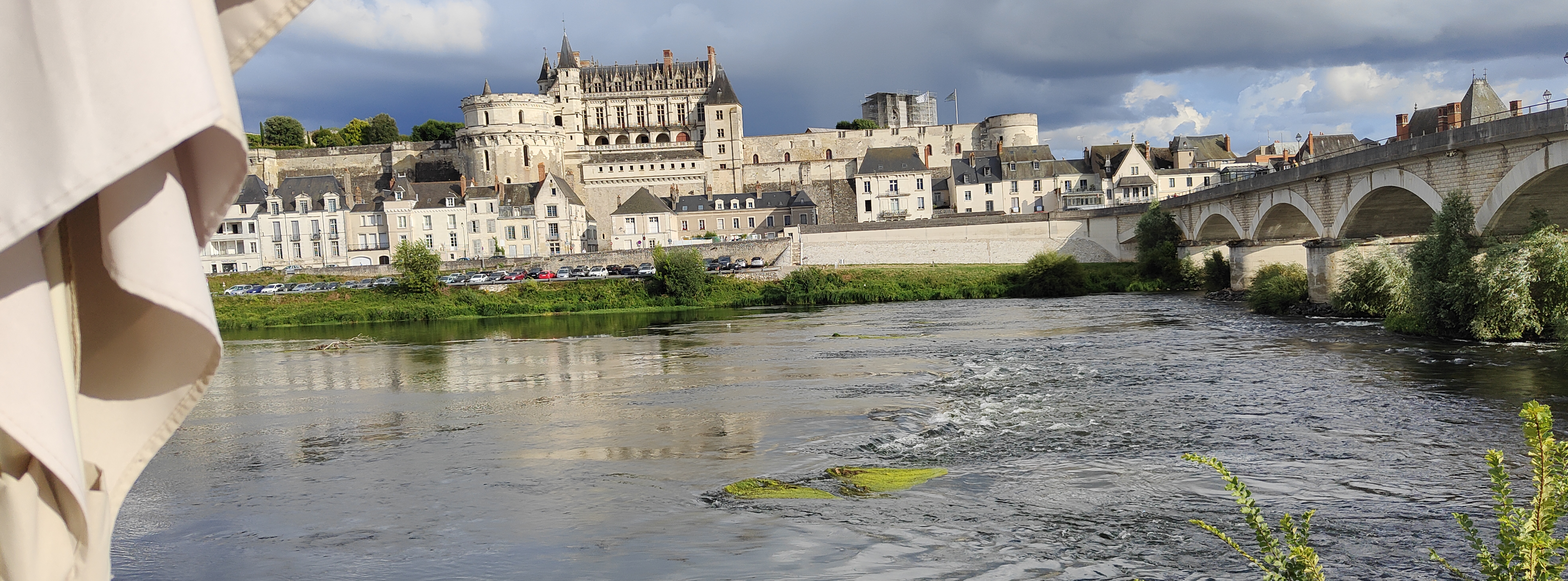 Terrasse au bord de la Loire, face au château d'Amboise, magnifique ! Je conseille les profiteroles délicieuses . Belle expérience