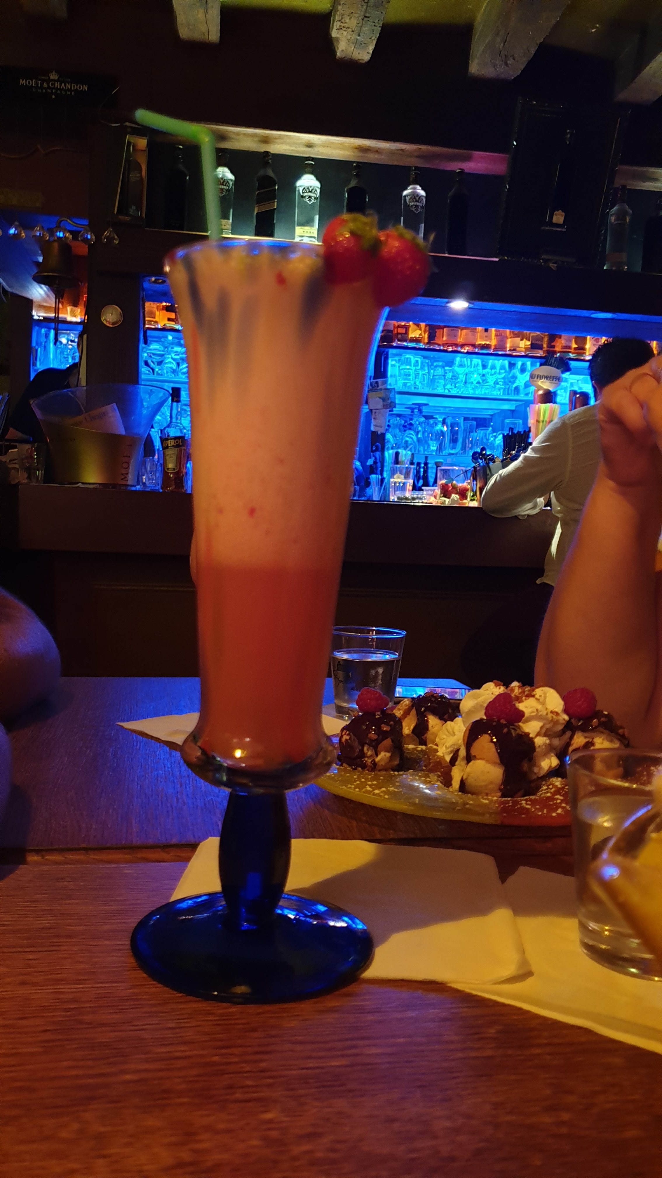 Bon cocktail bon banana split bon accueil beau cadre mais un peu cher