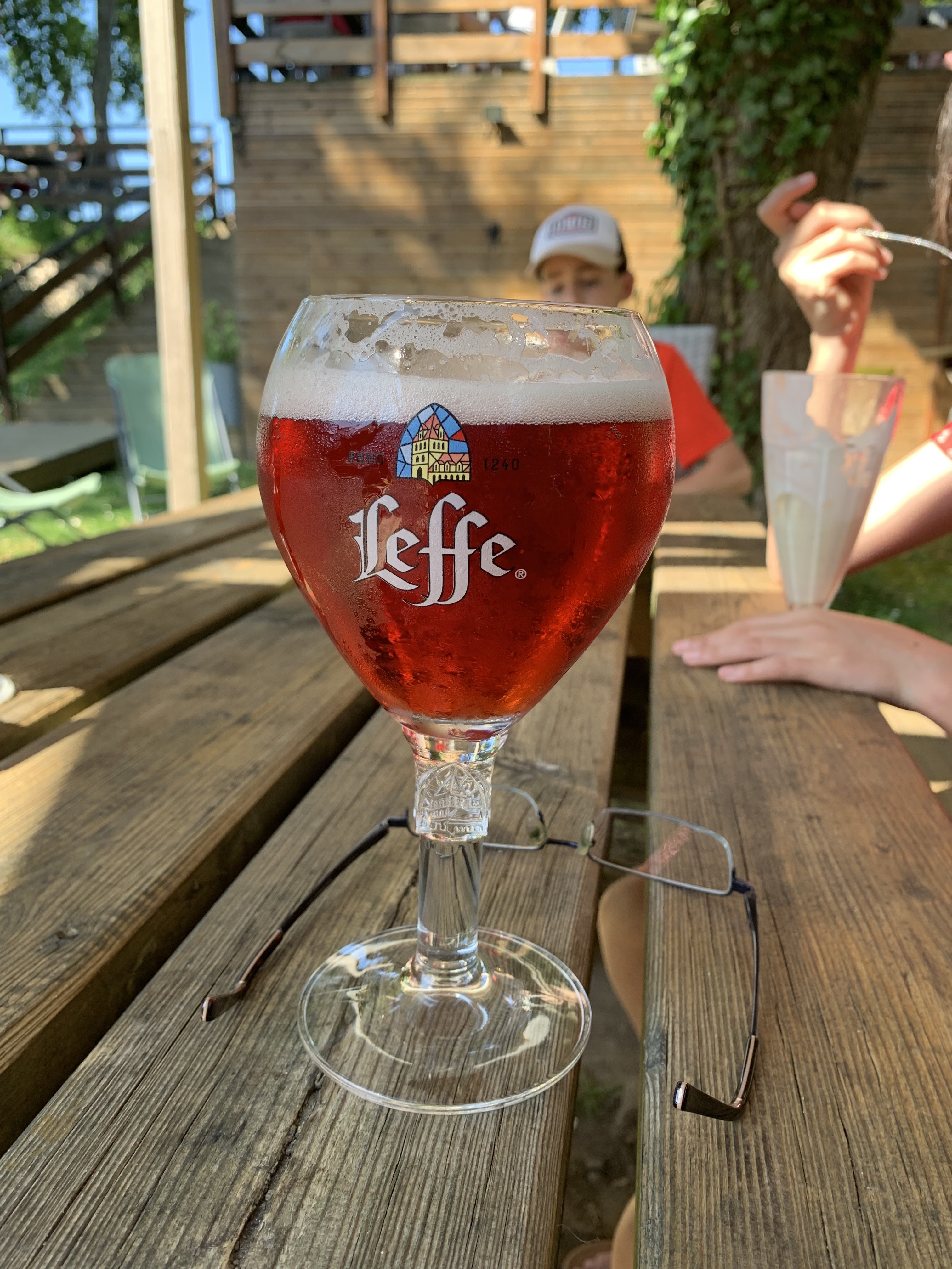 La terrasse mériterait plus d'égards . Le sol est terreux , les tables pic niques genre autoroute vieillottes , certaines genre salon de jardin bas de gamme sales . Le prix pour deux bières , un café lait , un coca cola , une boisson à base de thé . 21,40€ . Je laisse juge ceux qui lirons ce commentaire . Moi cela ne m'a pas satisfait .